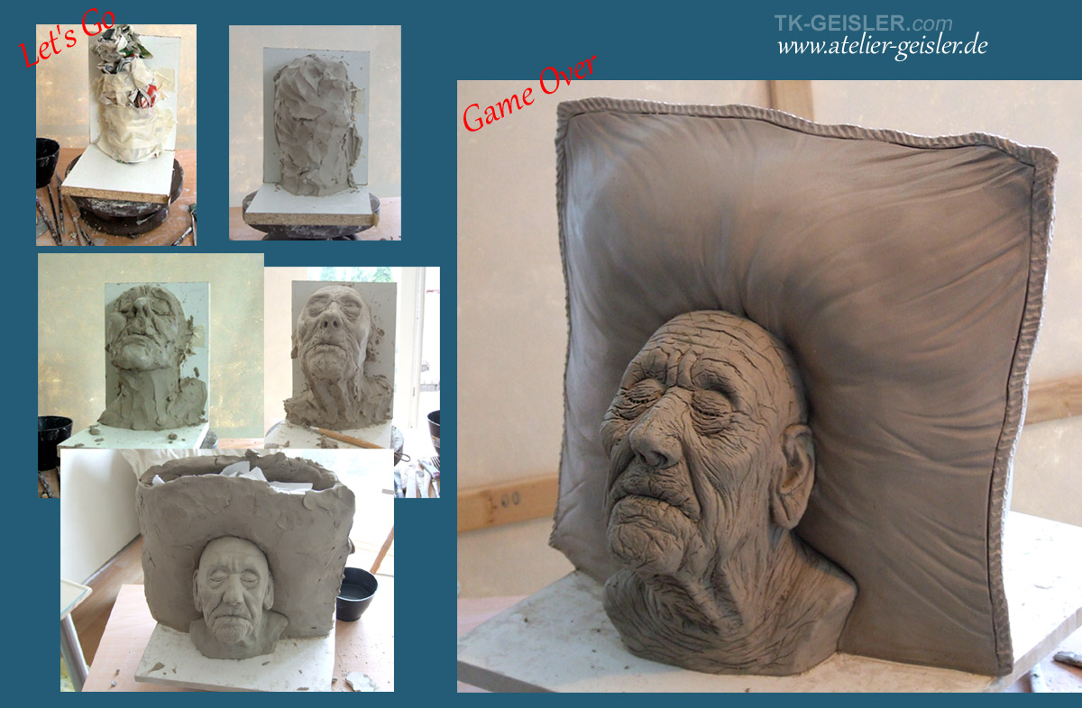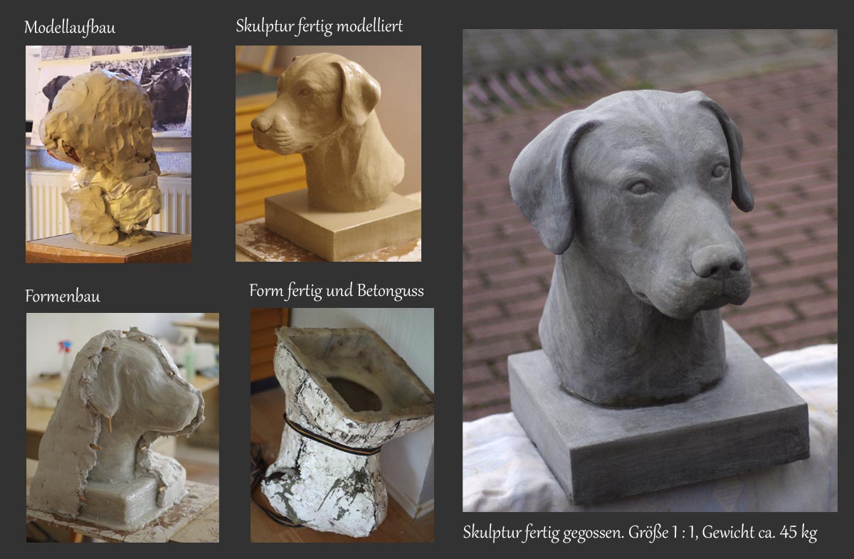 Entstehung einer Skulptur aus Beton, Größe 1 : 1, Gewicht ca 45 Kg.