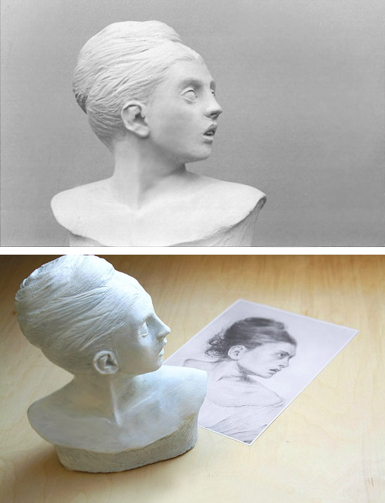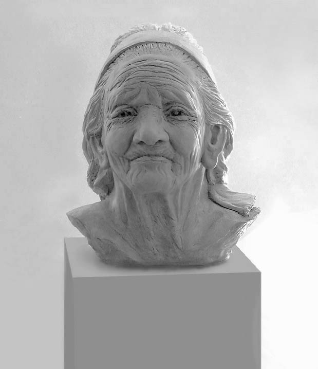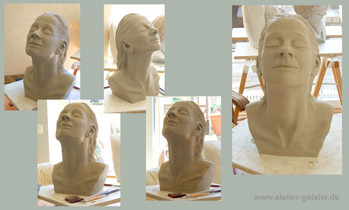 Entstehung einer Frauenbüste aus Ton. Größe 3 :4