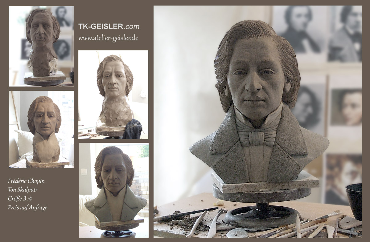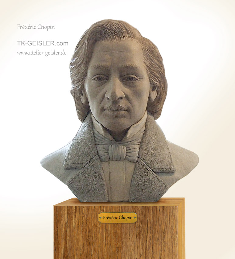 Plastik Frédéric Chopin Portraitplastik aus Ton, zweifarbig. Größe 3 : 4
