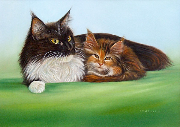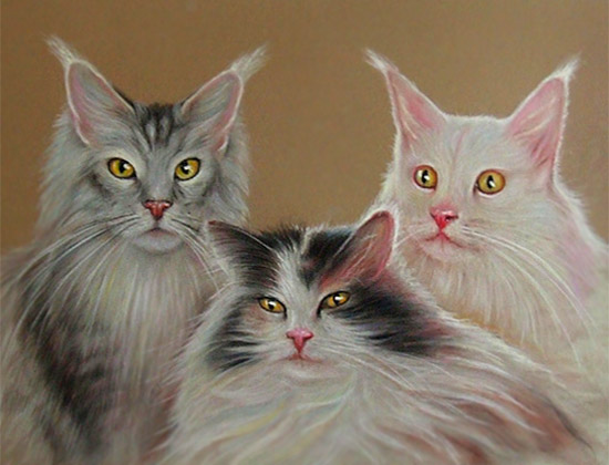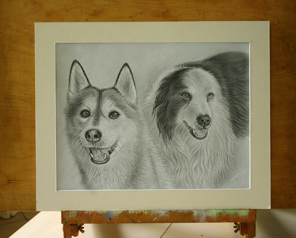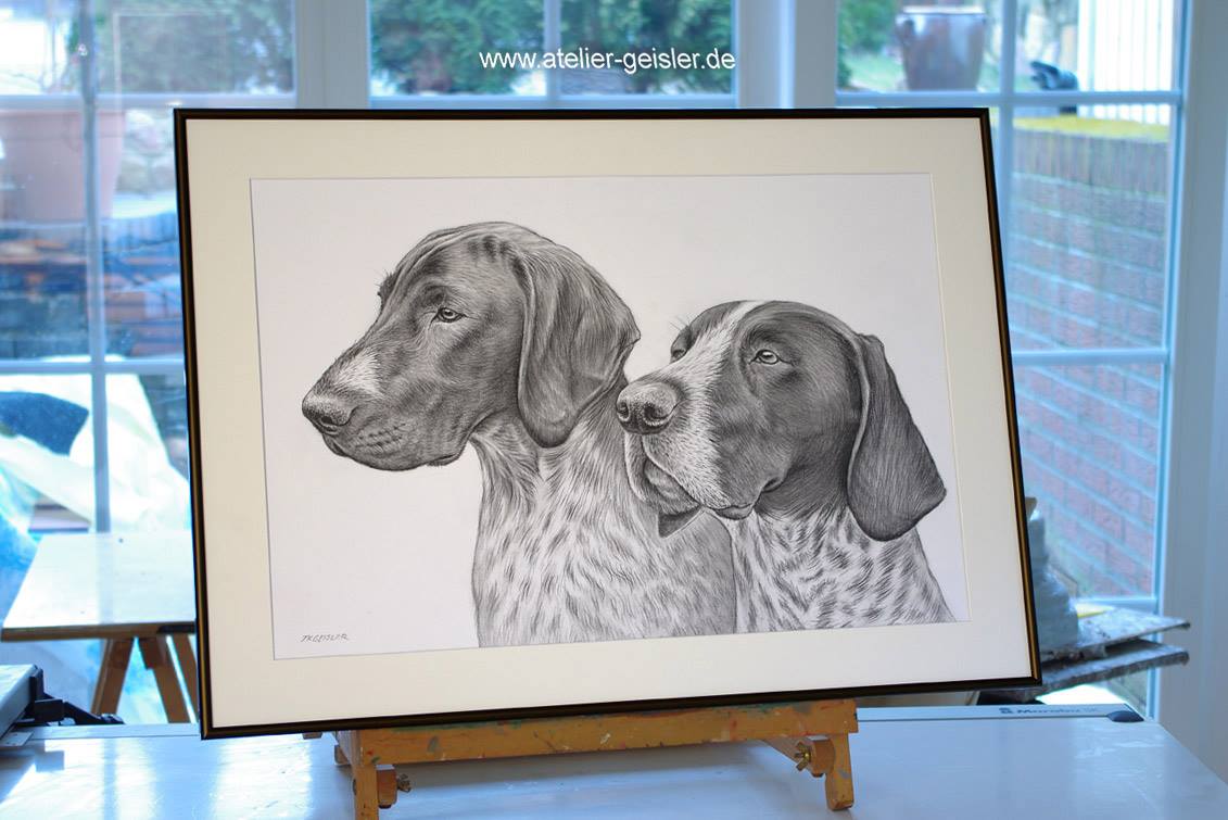 Wir verewigen Ihr Haustier in gewünschter Technik: Öl auf Leinwand, Pastellkreide, Bleistift- oder als Kohlezeichnung.